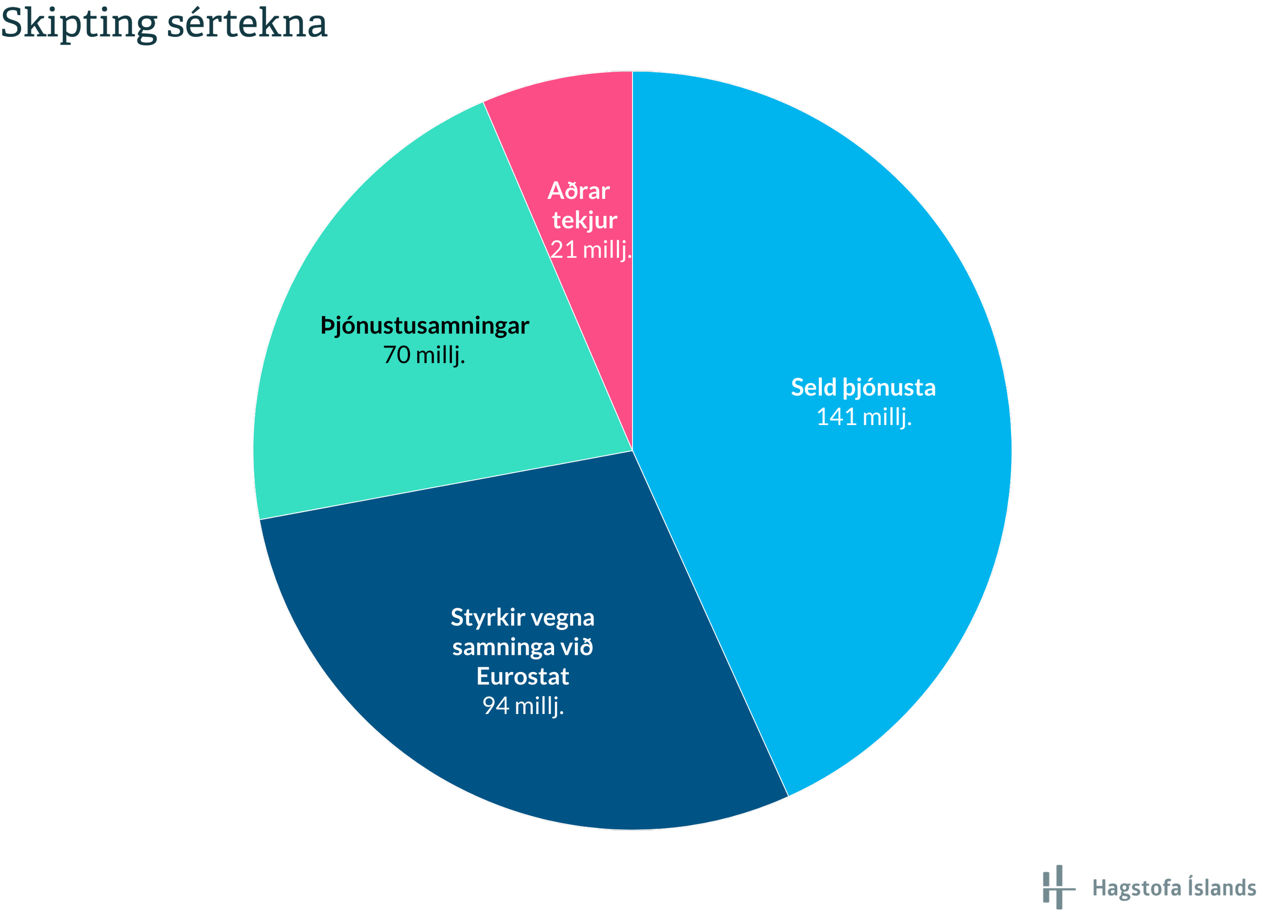 Sértekjur Hagstofunnar námu 326 m.kr. sem er 9,6% aukning á milli ára en árið áður námu sértekjur 298 m.kr. Sértekjur ársins námu um 16% af heildartekjum.